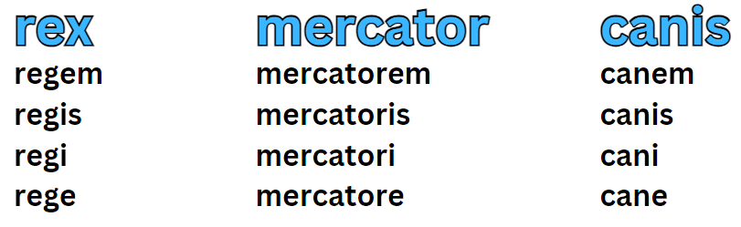 Now you might say, “how do I know? If first and second are so easy to spot, how do I know it's a third declension?” Well, the really simple answer is you look in your dictionary or vocab list. Any good list will show nouns in this format:
