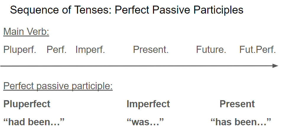 If I see a perfect passive participle, I think, “oh yeah, perfect, I know exactly what's going on here”. The main thing is to translate them fluently so that you try and keep that perfect passive sense. Take a step back in time from your main verb, because the participle has already been completed.