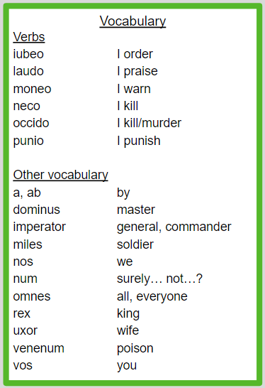 Then I'm going to get an infinitive: necare. “I am ordered to kill”.